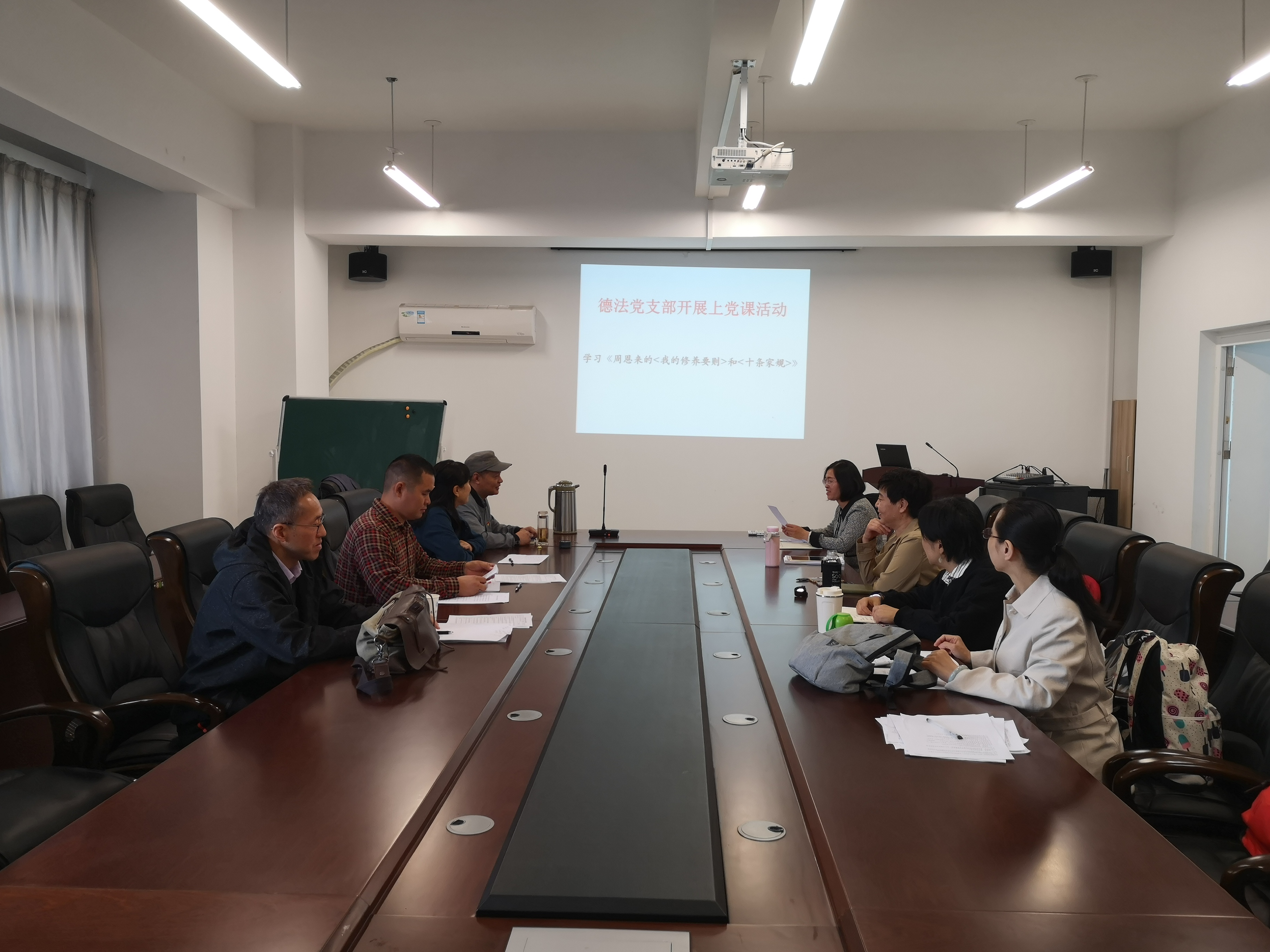 为贯彻落实《太阳成集团tyc234cc“不忘初心、牢记使命”主题教育的专题党课工作方案》,德法党支部于10月16日上午在公司会议室开展了上党课的活动。活动有德法党支部的8名党员参加,由支部书记李咏梅给大家上了主题为《周恩来的<我的修养要则>和<十条家规>》的党课。