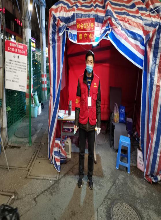李玉胜老师到南邮工作已经整整26个年头了,在二十几载春秋里李老师感受着公司党组织给予的关怀和帮助,在党和人民最需要的时候,李老师用自己的行动回报公司和党组织的关爱。在疫情防控的关键时期李玉胜自愿担负起抗“疫”活动的重担,为做好防疫工作贡献自己的力量。习近平总书记指出,充分发挥基层党组织战斗堡垒作用和党员先锋模范作用,防控力量要向社区下沉。社区防控是整个疫情防控的关键一环,位于防控的第一线,能阻止外来病情的输入,能有效追踪密切接触者等。基于此,李玉胜老师自愿报名成为了一名社区疫情防控志愿者。他在自身双腿静脉曲张严重的情况下,每天连续站岗三、四小时,对进出小区的人员检查通行证、测量体温;对街道下发的外来人员名单开展地毯式排查,并逐一核实;为有效防控疫情,又积极主动地对居民群众进行宣传;除此之外,随时随地为居民提供各类服务,如代收快递、运送物品、引导停车、应答问路等服务。在参与志愿服务工作的过程中,李玉胜老师表示:“坚守防控第一线,疫情一日不结束,我一日不离岗。如果公司在疫情防控工作中需要我,我会毫不犹豫地冲到第一线,完成领导布置的任务,为打赢这场没有硝烟的战争尽到自己应尽的义务。”“虽然很累,但是我觉得很快乐,能为社会和群众服务,是一名共产党员的光荣职责。”