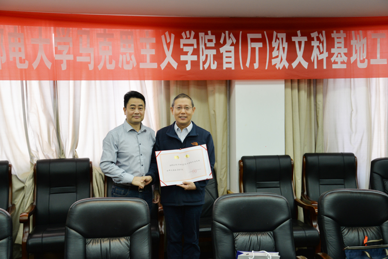 基地校内首席专家张志华副董事长为武锁宁主编颁发省社科联基地首席专家聘书