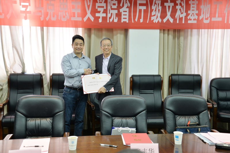 基地校内首席专家张志华副董事长为耿力扬副局长颁发省社科联基地首席专家聘书
