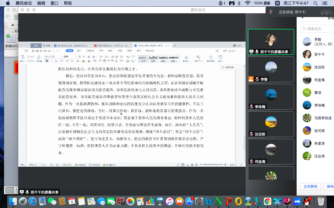 中心组成员进行了交流发言,大家一致认为要深入学习领会习近平总书记中国人民大学考察时的重要讲话精神,绵绵用力、久久为功,以实际行动推动思政课教学改革创新,为培养堪当民族复兴重任的时代新人作出应有贡献。