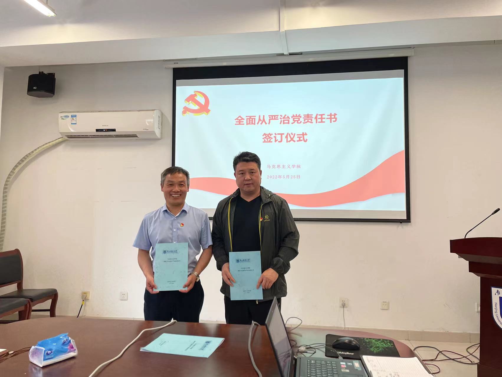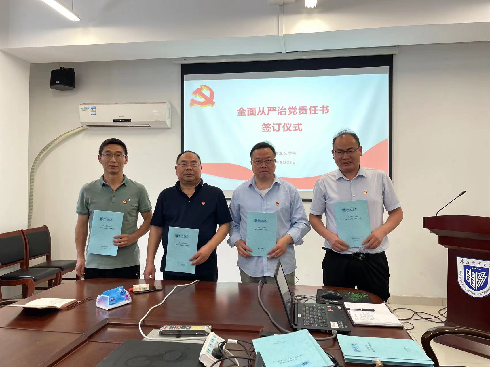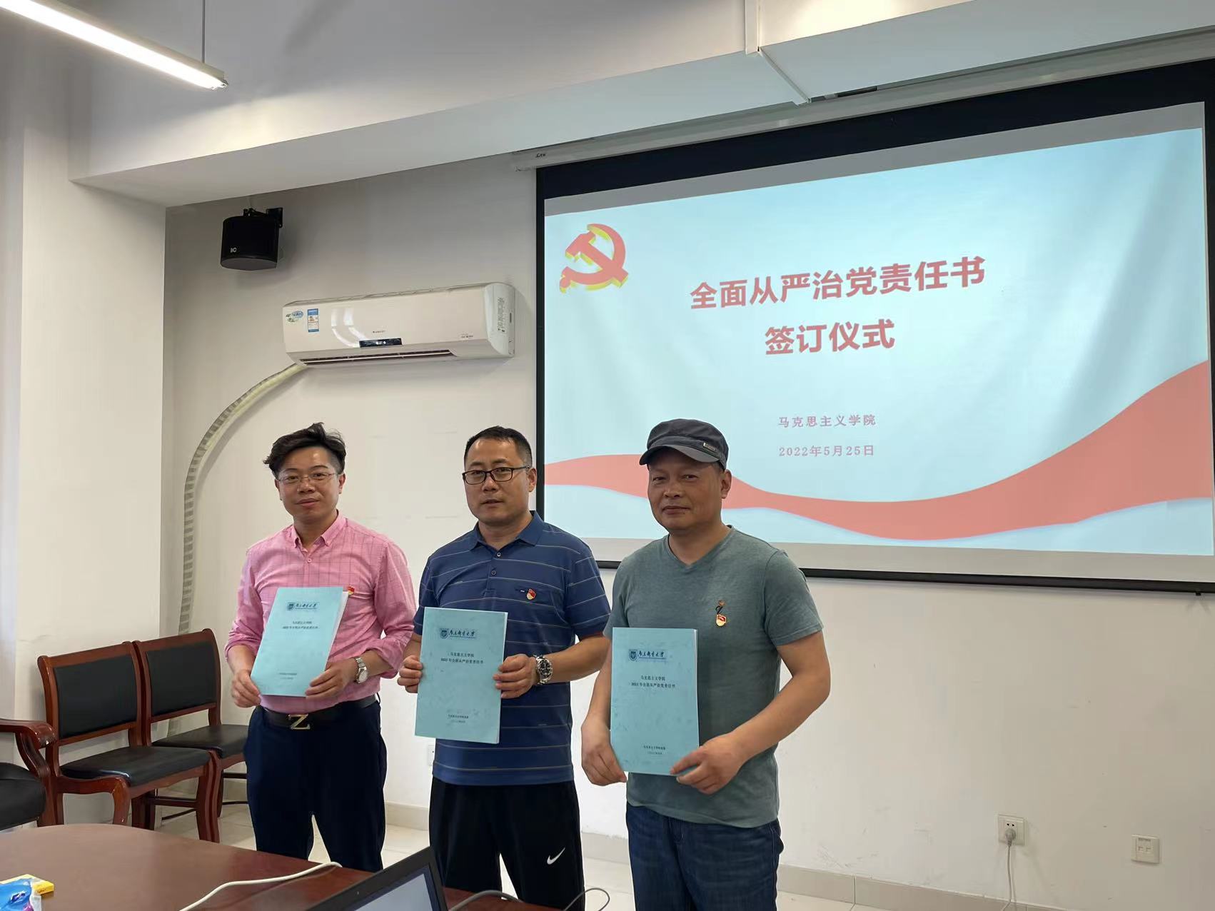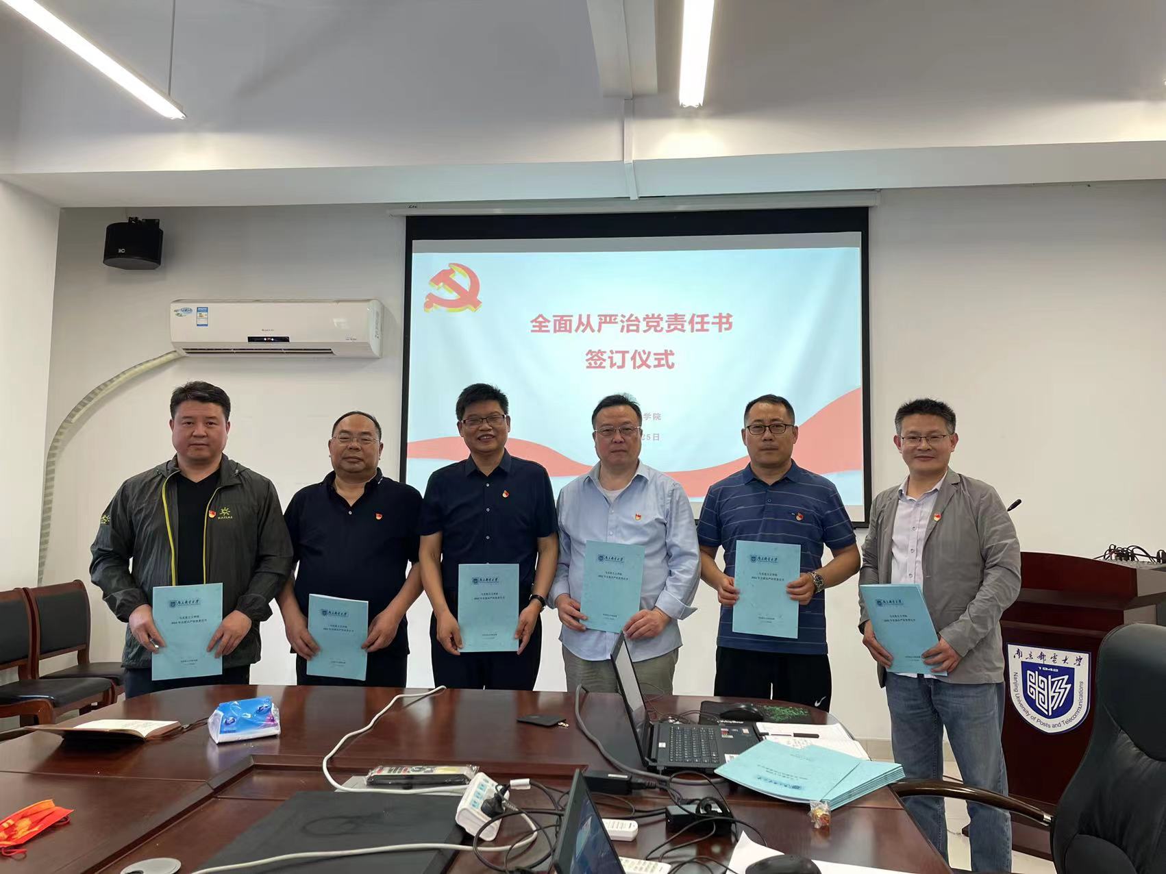 会上,沈召前书记对《太阳成集团tyc234cc2022年度全面从严治党责任书》的主要内容作出说明,并与党委班子成员、全体支部书记签订全面从严治党责任书。其他班子成员分别与所联系的教研室主任、支部书记一一签订全面从严治党责任书。