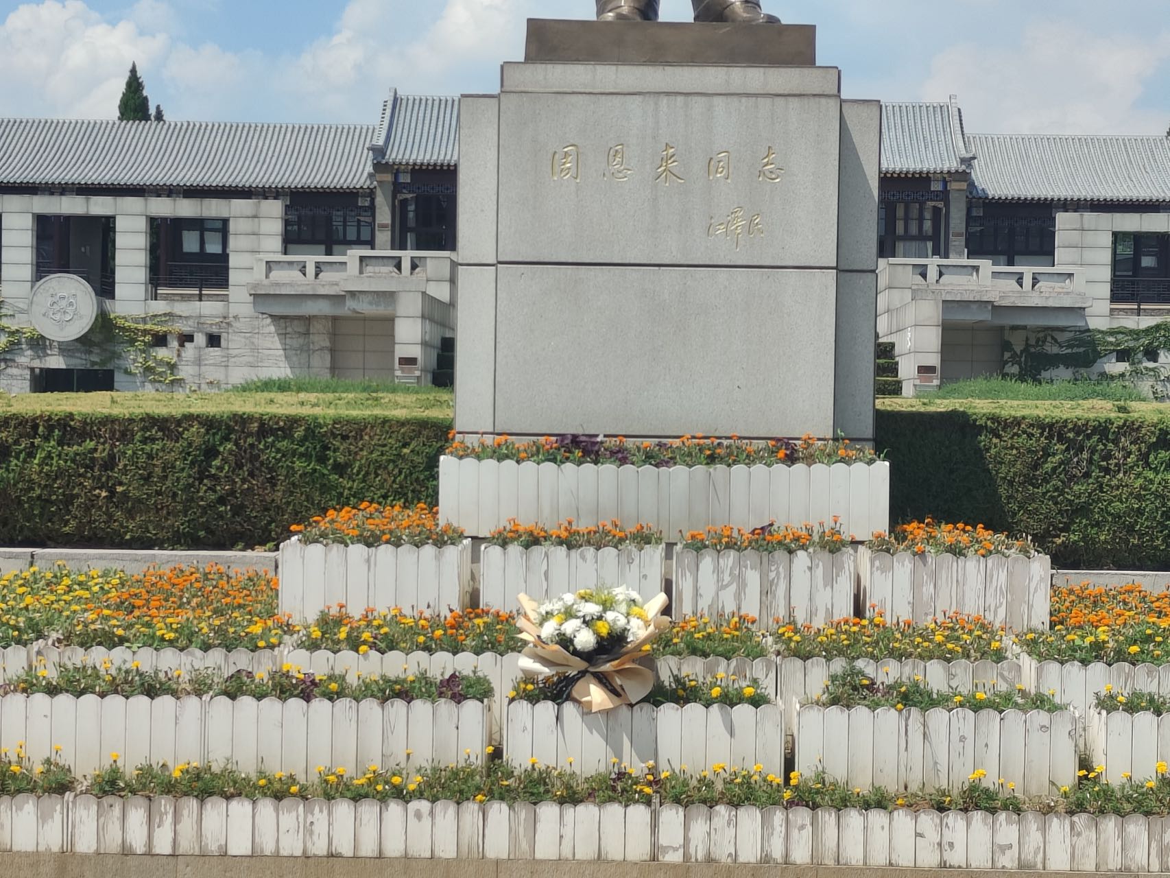 “大江歌罢掉头东,邃密群科济世穷。面壁十年图破壁,难酬蹈海亦英雄。”这句气势雄浑的诗句是周恩来总理在青年时期所写下的。在那个风云激荡的年代,面对凋敝的祖国,胸怀一颗爱国赤子之心的周恩来立志要为革命奉献自己的一切。最后,我将一束鲜花,置于周总理铜像下,默默悼念着他,以表我对他崇高的敬意!在全面建设社会主义强国时期,让广大青少年学习党史、铭记党史,勿忘昨天的苦难辉煌,无愧今天的使命担当,不负明天的伟大梦想,真正做到以史为鉴、开创未来,真正坚定历史自信。只要我们持之以恒这样做,就一定能收到明显成效。广大青少年也需要不断完善自身实力,真正做到为中华崛起而读书!致敬——周恩来总理!