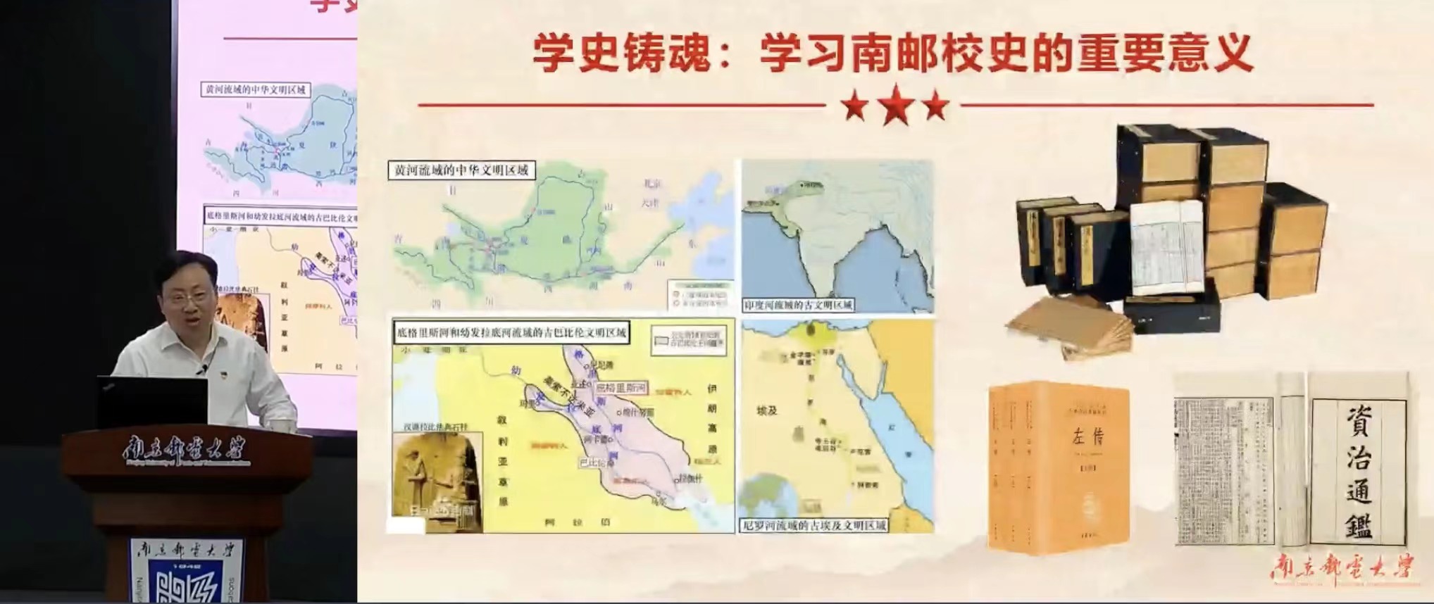 校史是南邮学子了解过去、理解今天、面向未来的最生动的思政必修课。“学习南邮校史,也是学习党史、中国革命史、新中国建设史的一个过程。”刘陈教授从太阳成集团tyc234cc的校史讲起,以点及面,由浅入深,号召同学们在南邮校史中赓续红色血脉,传承红色基因。他强调,全体研究生应牢记习近平总书记“要把红色资源利用好、把红色传统发扬好、把红色基因传承好”的重要指示,把实现个人价值与社会价值结合起来,埋头苦干,逐梦起航,矢志报国,为实现中华民族伟大复兴的中国梦贡献一份力量,以实际行动践行好“请党放心,强国有我”的青春誓言。