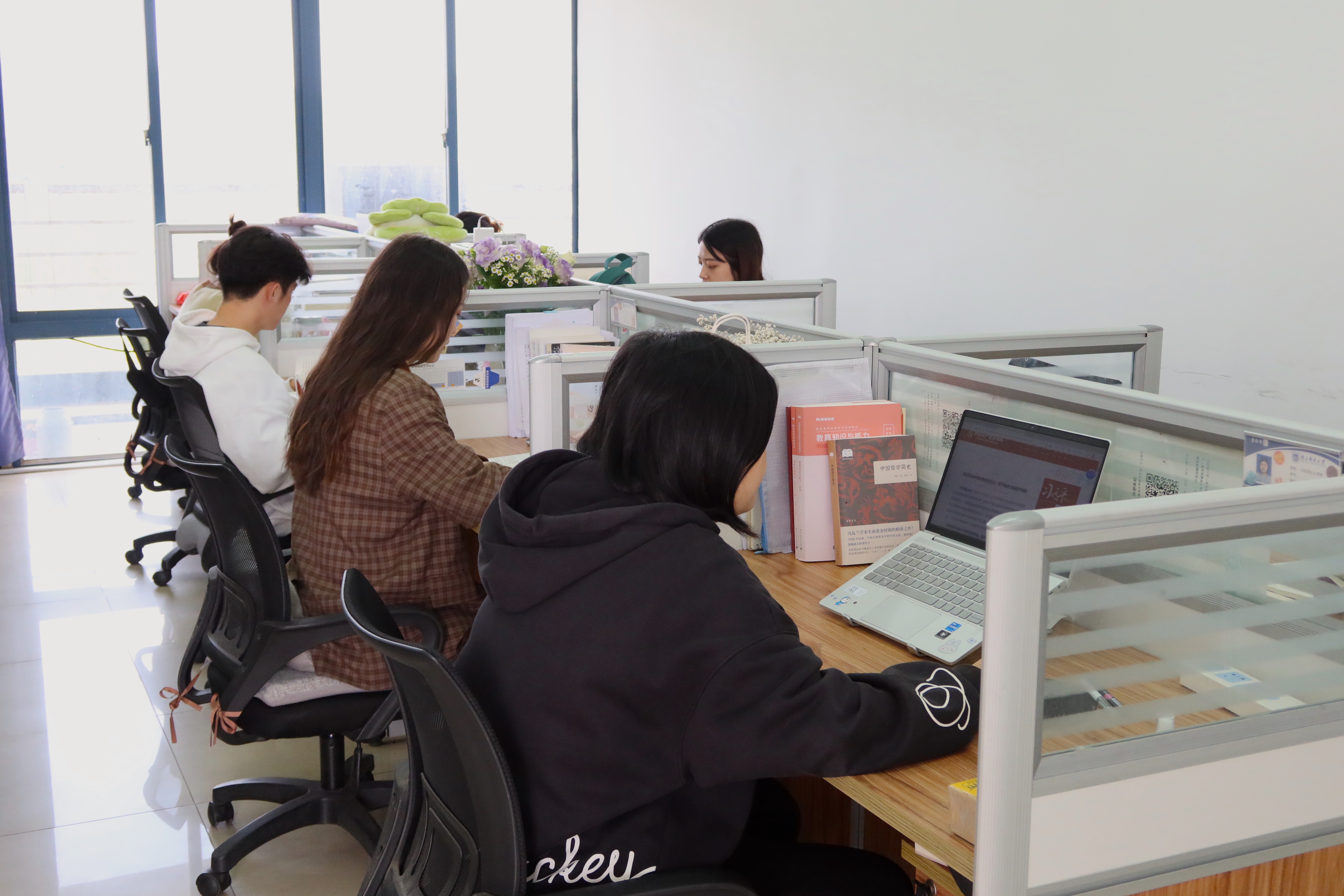每间教研室都“细节满满”,细节之处彰显用心。首先是教研室每个座位上都装上了工位牌,专人专座,给同学们满满的“安全感”和“归属感”。专属座位可以满足同学们的个性化需求,方便同学们装饰和清洁座位,打造独一无二的学习基地。其次,每间教研室都配有打印机和基本的学习用品,满足各位同学日常学习所需,大大提升学习效率。同学们在此展示才华、挥洒笔墨、创新成果,在交流中进行思维碰撞、共同进步。