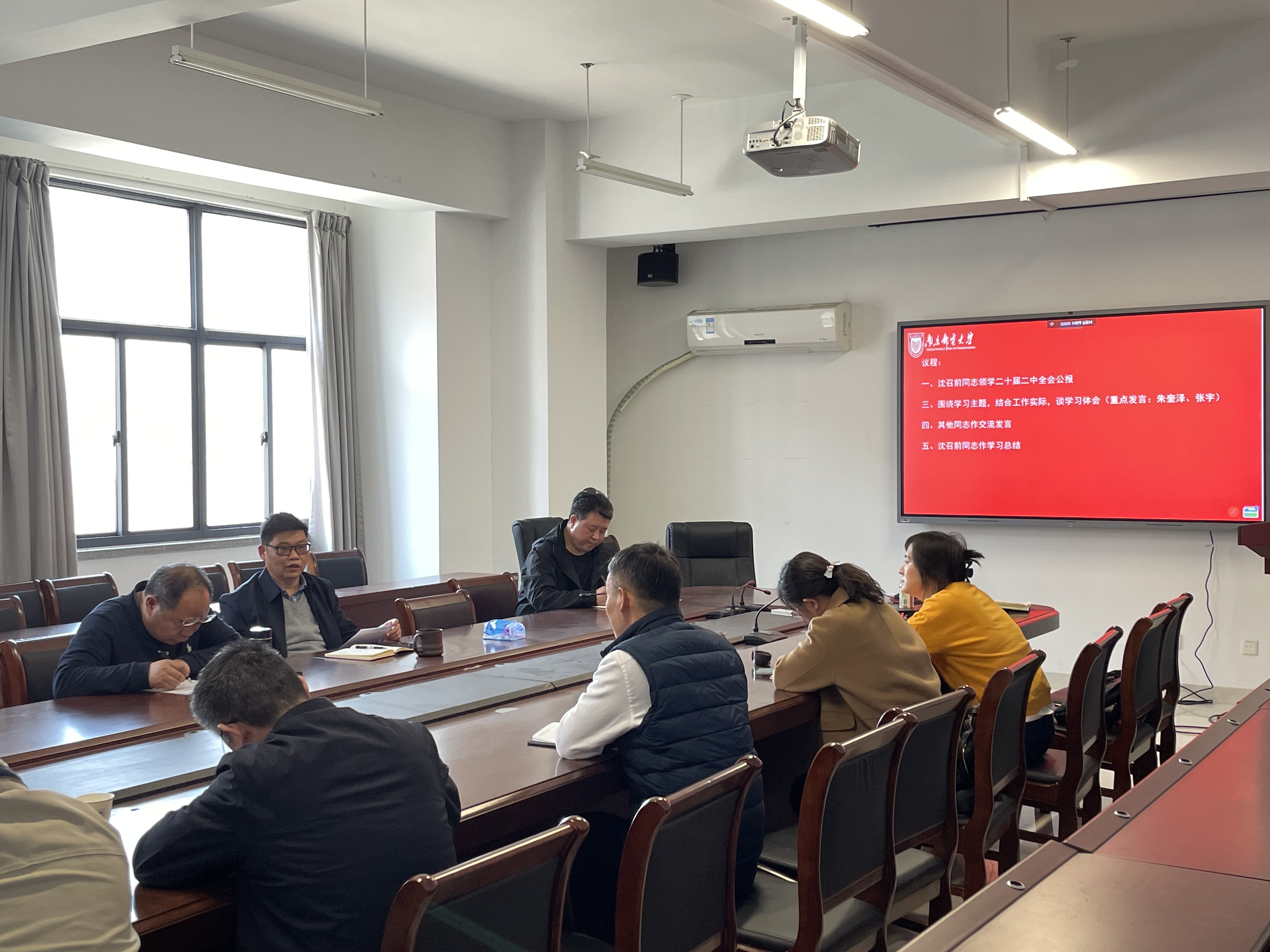 3月15日,公司党委理论学习中心组在文科楼330会议室召开专题学习会,学习党的二十届二中全会精神。党委书记沈召前领学了党的二十届二中全会公报,他强调党的二十届二中全会是在全面深入贯彻党的二十大精神开局之年召开的一次十分重要的会议,公司要持续深入学习贯彻党的二十大精神,持续推动习近平新时代中国特色社会主义思想和党的二十大精神入脑入心,扎实推进 “三进”,全面加强公司党的建设,提升党支部凝聚力,发挥战斗堡垒作用,切实把党建工作实效体现在加强作风建设、提高科研水平、提升服务师生质量上。沈召前书记要求,理论学习中心组成员要把理论学习与教学科研相结合,与服务管理工作相结合,努力学出成效、学以致用。党委副书记朱奎泽、经理助理张宇作重点发言,理论学习中心组其他成员进行交流研讨。