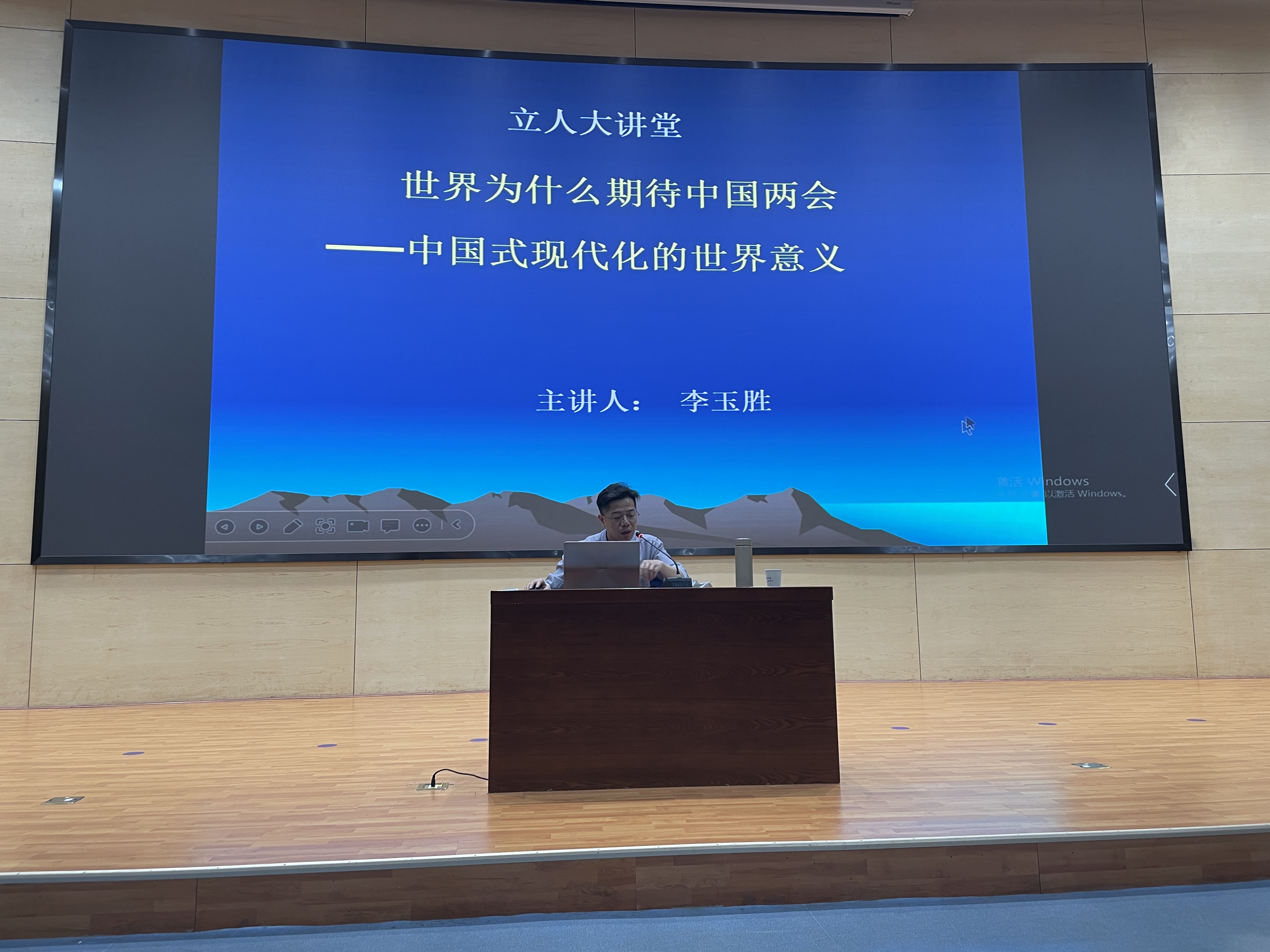 2023419日,太阳成集团tyc234cc李玉胜副教授做客立人大讲堂,作题为《世界为什么期待中国两会——中国式现代化的世界意义》的专题讲座。