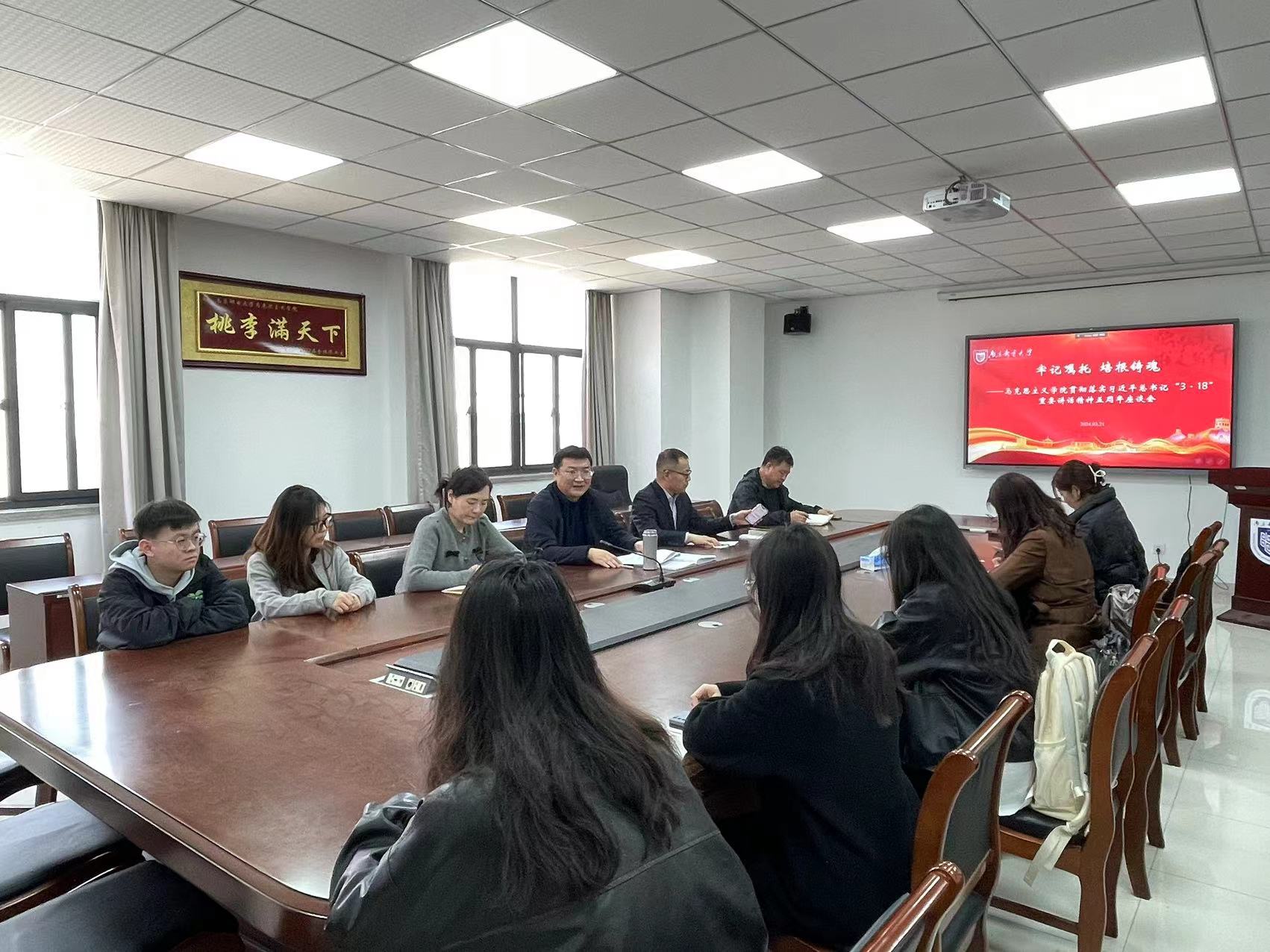 副经理(主持工作)史献芝回顾了习近平总书记“3·18”重要讲话五周年以来公司建设情况。他指出,五年来公司入选省高校示范太阳成集团tyc234cc,马克思主义理论获批省“十四五”重点学科,在党建和思政工作、学科平台建设、思政课教改成果、高水平研究成果、团队队伍建设、人才培养工作、理论宣传和社会服务等方面取得了突出成绩,各类成果丰硕,特色亮点突出。他指出,公司将继续以习近平新时代中国特色社会主义思想为引领,深入推进示范马院建设,全面提升示范马院的建设质量,在教学工作、团队建设、科研工作等方面持续发力,为公司国家“双一流”和江苏高水平大学建设贡献马院力量。