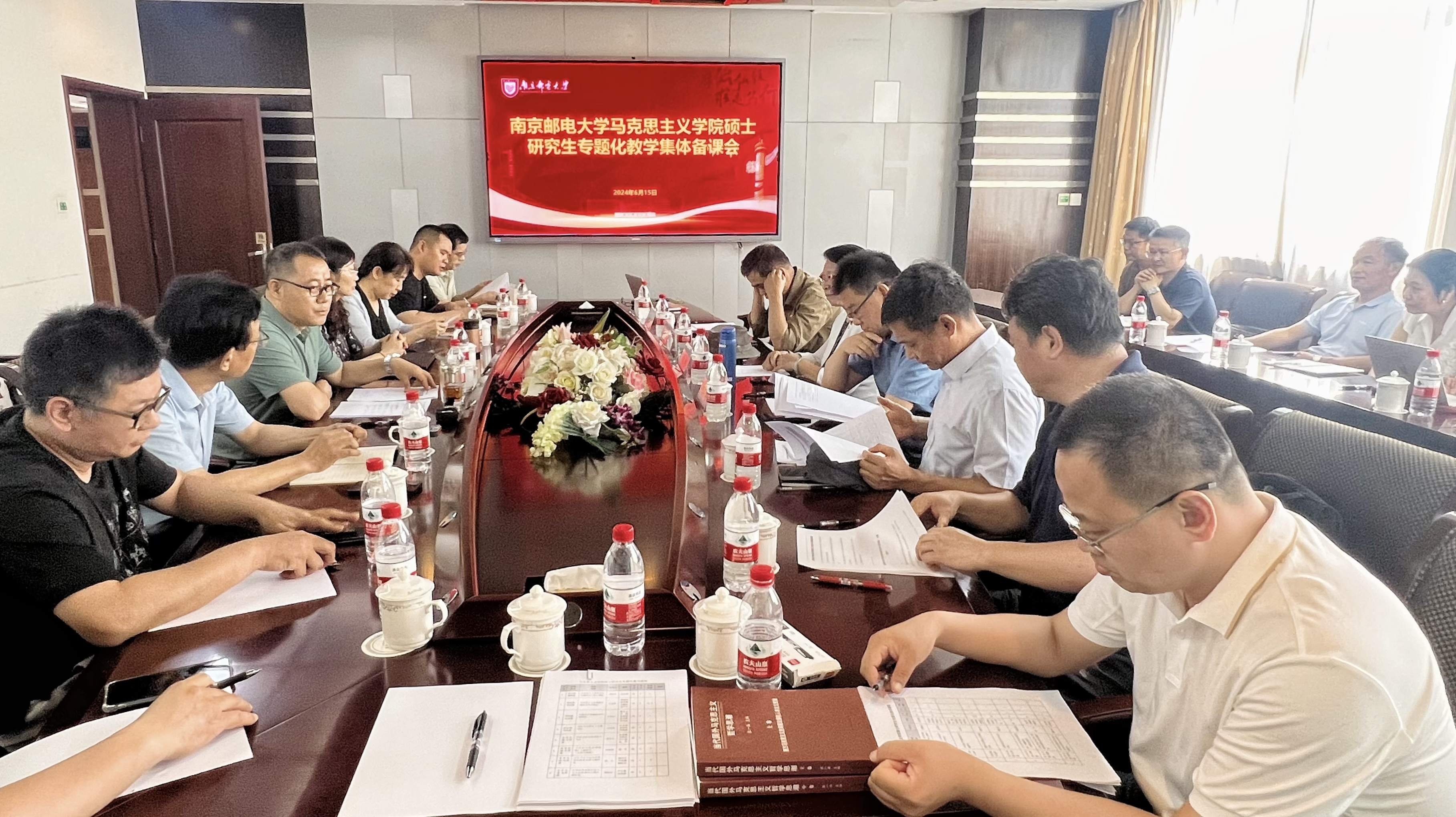 为深化太阳成集团tyc234cc研究生的公司产品改革,提升研究生专题化教学的实效性,更好推动马克思主义理论团队建设,太阳成集团tyc234cc于6月15日在仙林宾馆第一会议室召开了专题化教学集体备课会。会议邀请了扬州大学太阳成集团tyc234cc刘诚教授、南京大学太阳成集团tyc234cc经理胡大平教授、扬州大学太阳成集团tyc234cc经理胡立法教授、太阳成集团tyc234cc发展规划处处长胡纵宇教授、太阳成集团tyc234cc发展规划处副处长宋振超教授莅临指导。备课会由副经理史献芝(主持工作)主持,公司全体硕士生导师参加。