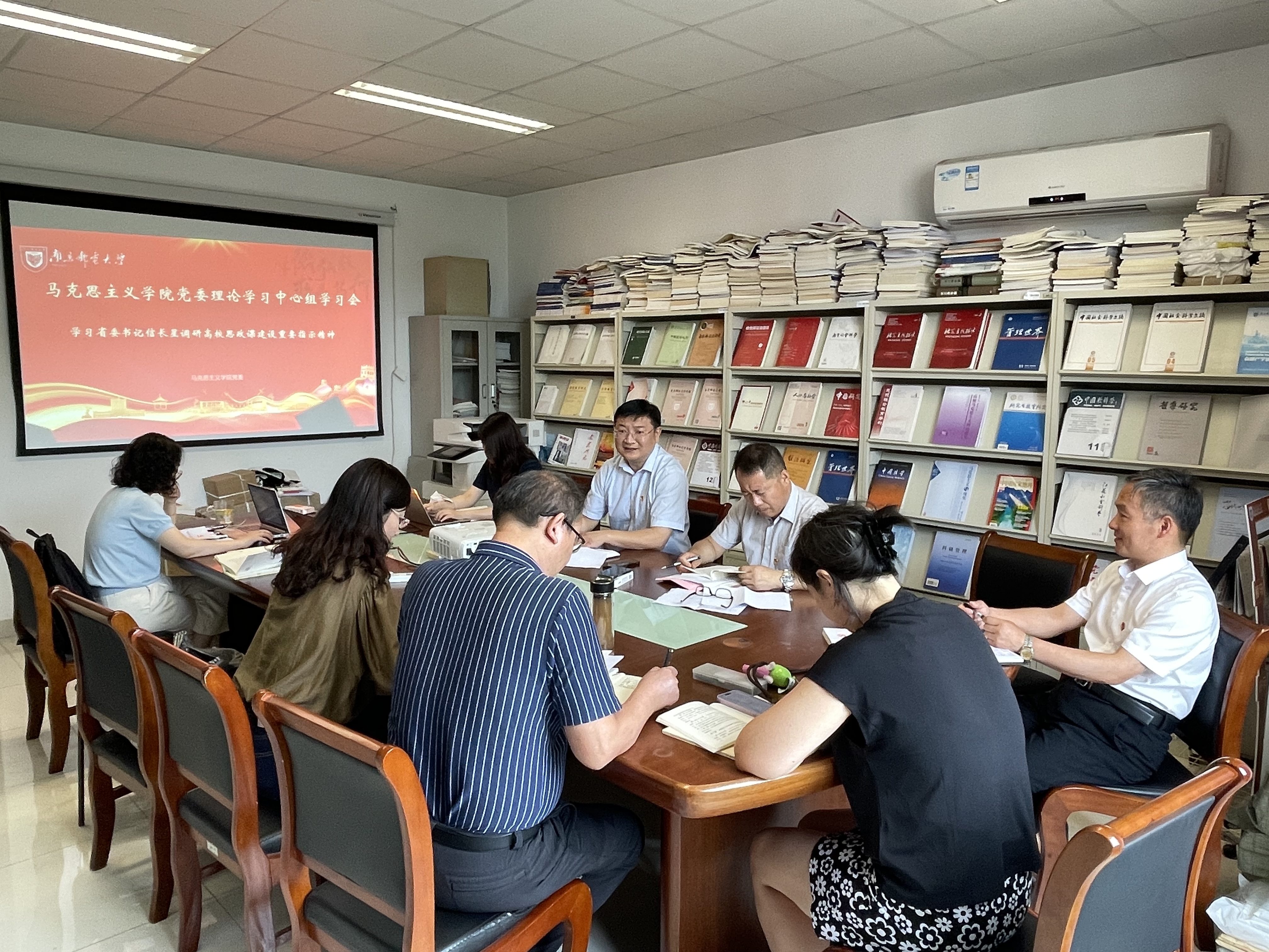 李大伟书记领学省委书记信长星调研南邮思政课建设讲话,党委理论学习中心组成员进行交流研讨。