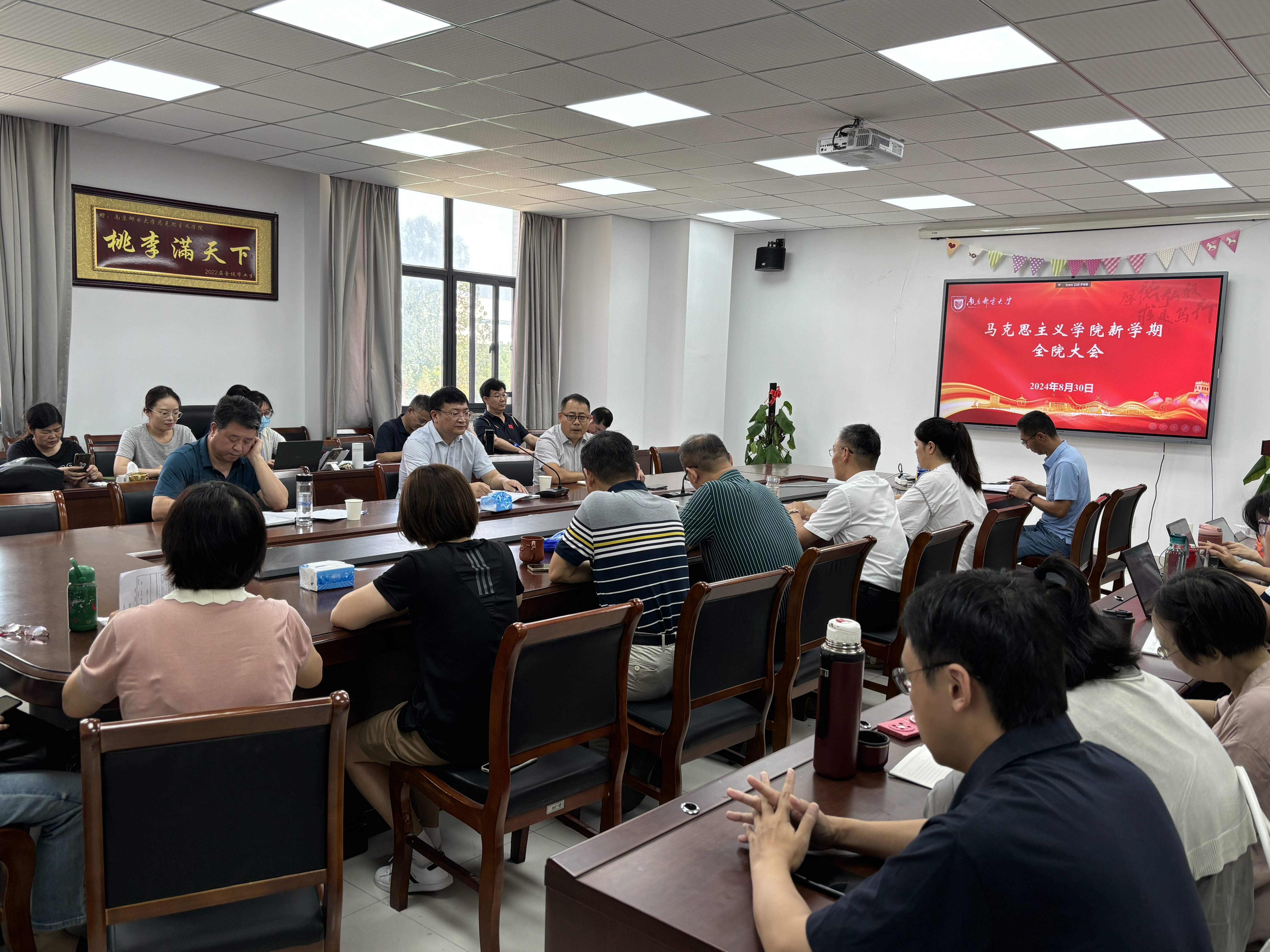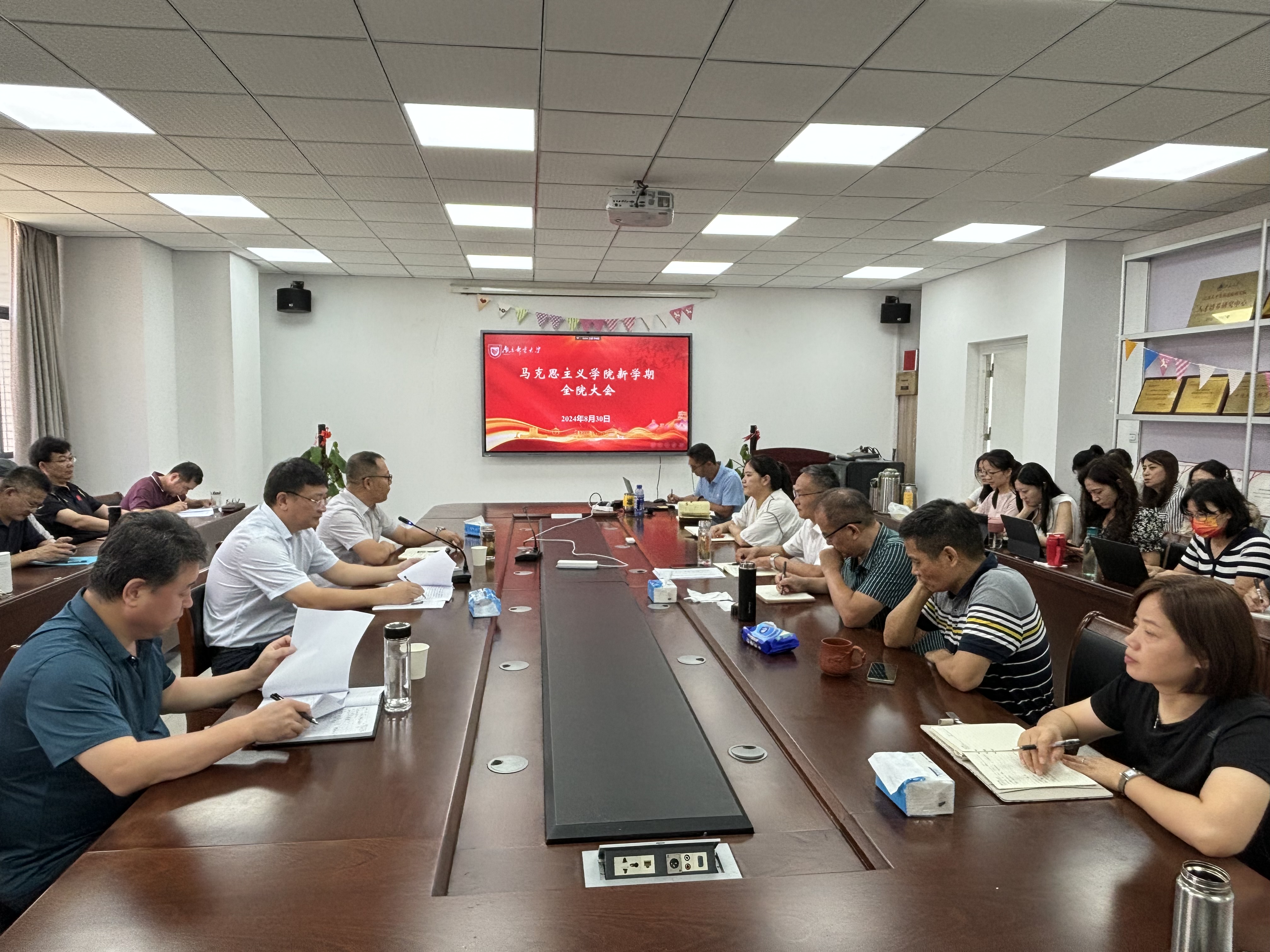 8月30日,公司在文科楼330会议室召开2024年秋学期开学全院大会。公司党委书记李大伟、副经理(主持工作)史献芝、党委副书记、副经理朱奎泽出席会议,全体教师和办公室行政人员参加,会议由党委书记李大伟主持。