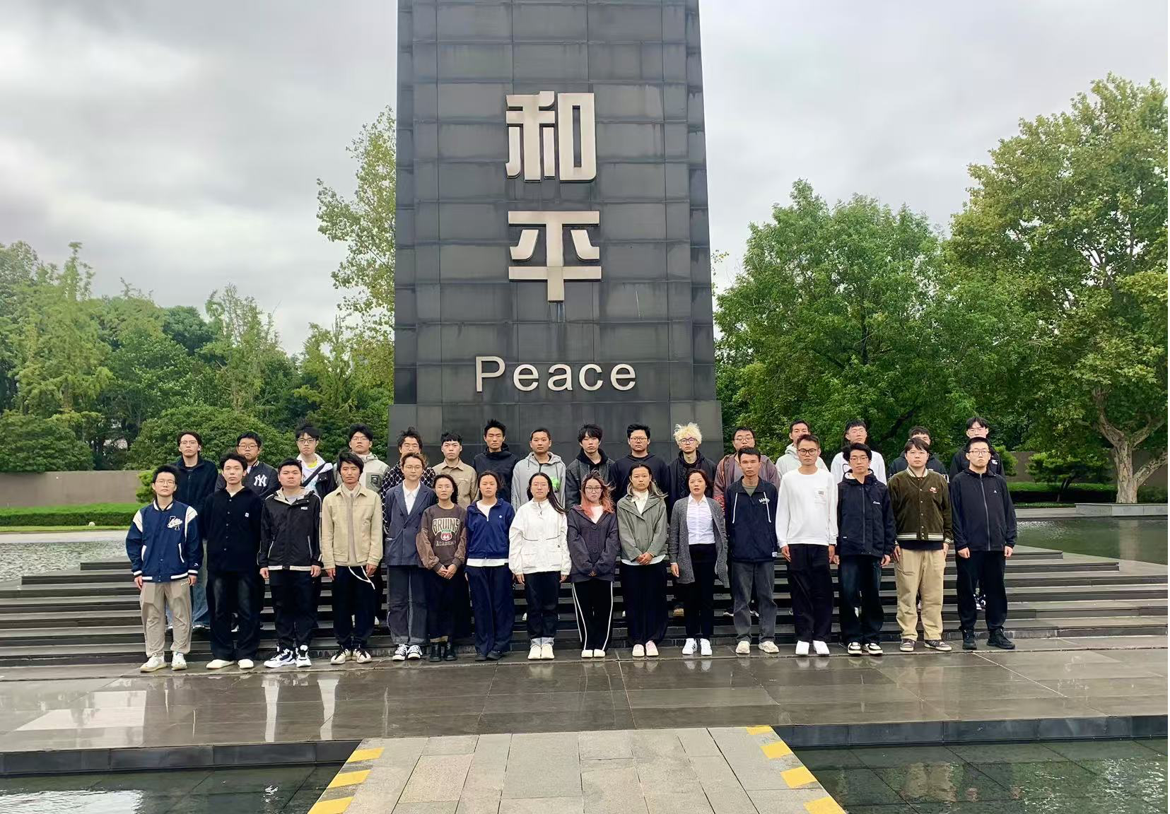 铭记历史,缅怀逝者。参观活动开始前,全体师生怀着庄严肃穆的心情,在纪念馆小广场举行了默哀仪式,深切缅怀在南京大屠杀中遇难的无辜同胞。全体师生低头默哀,面容凝重,现场的宁静似乎将时光拉回到了那段黑暗的历史,仿佛能够感受到1937年12月南京沦陷时的悲痛和屈辱。这是对历史的沉思,也是对和平的祈愿。