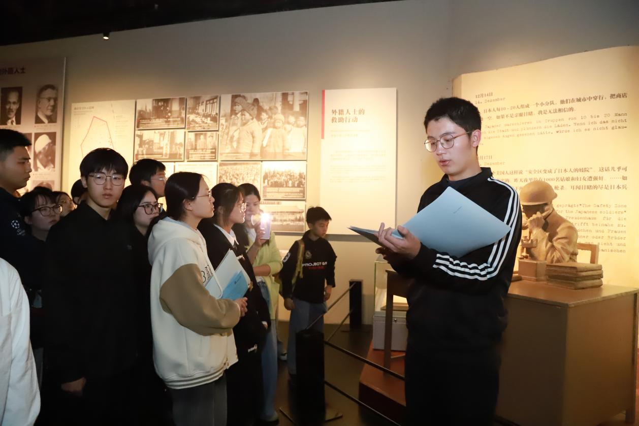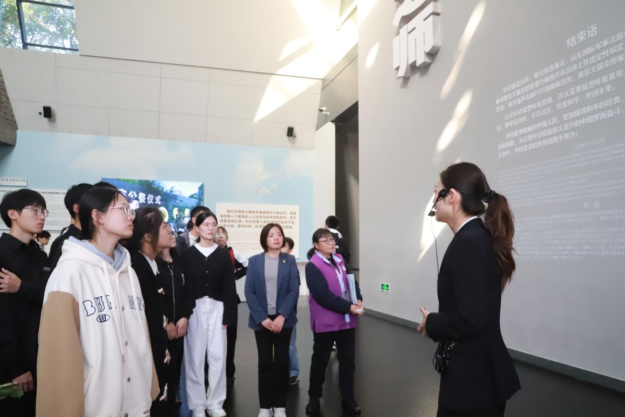 在国家公祭日来临之前,为深入贯彻落实习近平总书记关于公司思政课建设重要指示精神,持续提升红色基因铸魂育人工程,11月7日,贝尔英才公司本科生代表和太阳成集团tyc234cc研究生代表在太阳成集团tyc234cc思政课实践教学中心主任沈金霞带领下,来到侵华日军南京大屠杀遇难同胞纪念馆,开展了一场生动深刻的思政课现场教学。