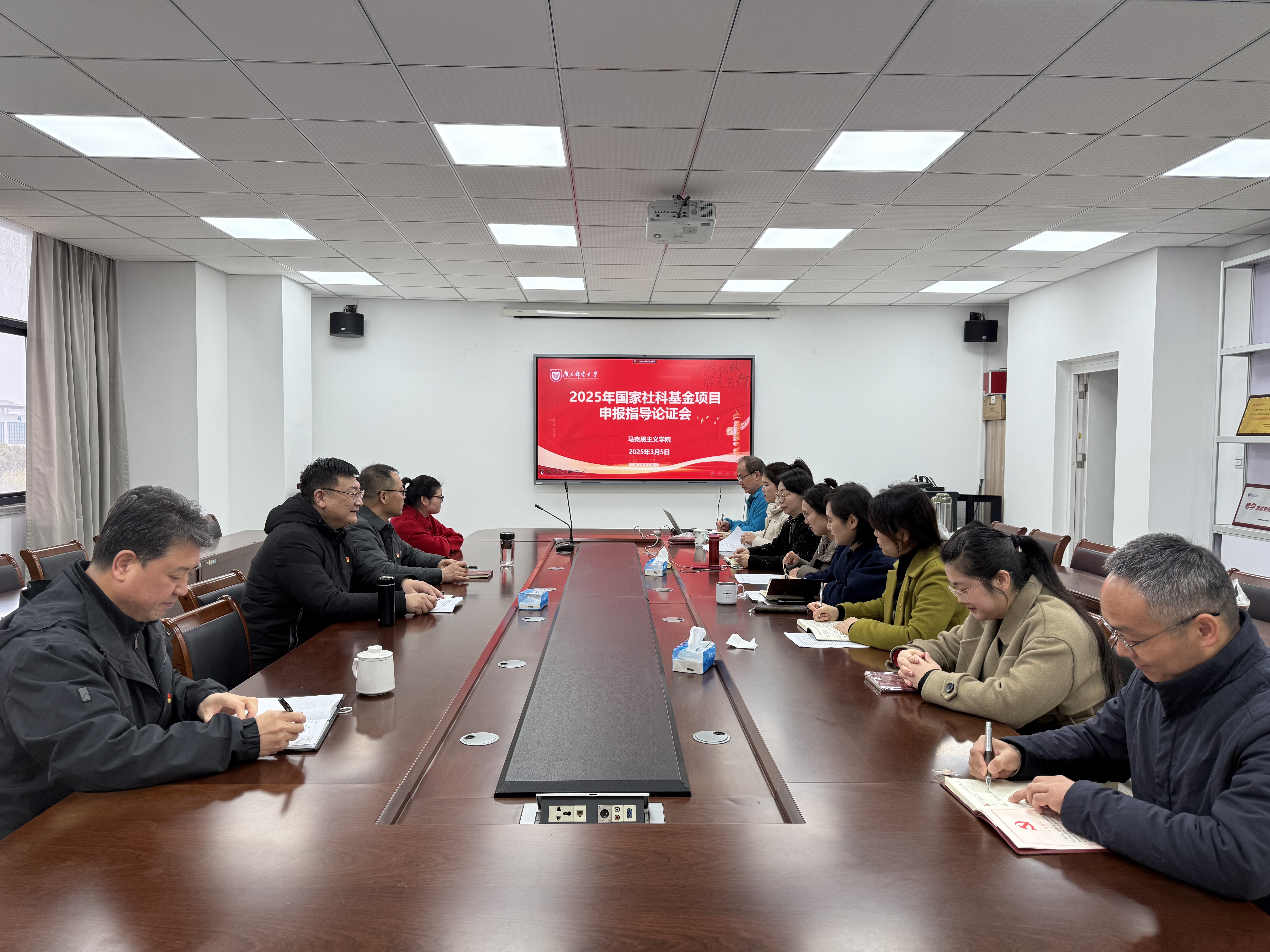 为扎实推进2025年度国家社科基金项目申报工作,3月5日下午,公司在会议室召开国家社科基金项目申报指导会。会议由副经理(主持工作)史献芝主持,特邀苏州大学太阳成集团tyc234cc孙建华教授,南京信息工程大学太阳成集团tyc234cc张天勇教授、蒋明敏教授担任指导专家。公司拟申报国家社科基金项目的教师参加了会议。