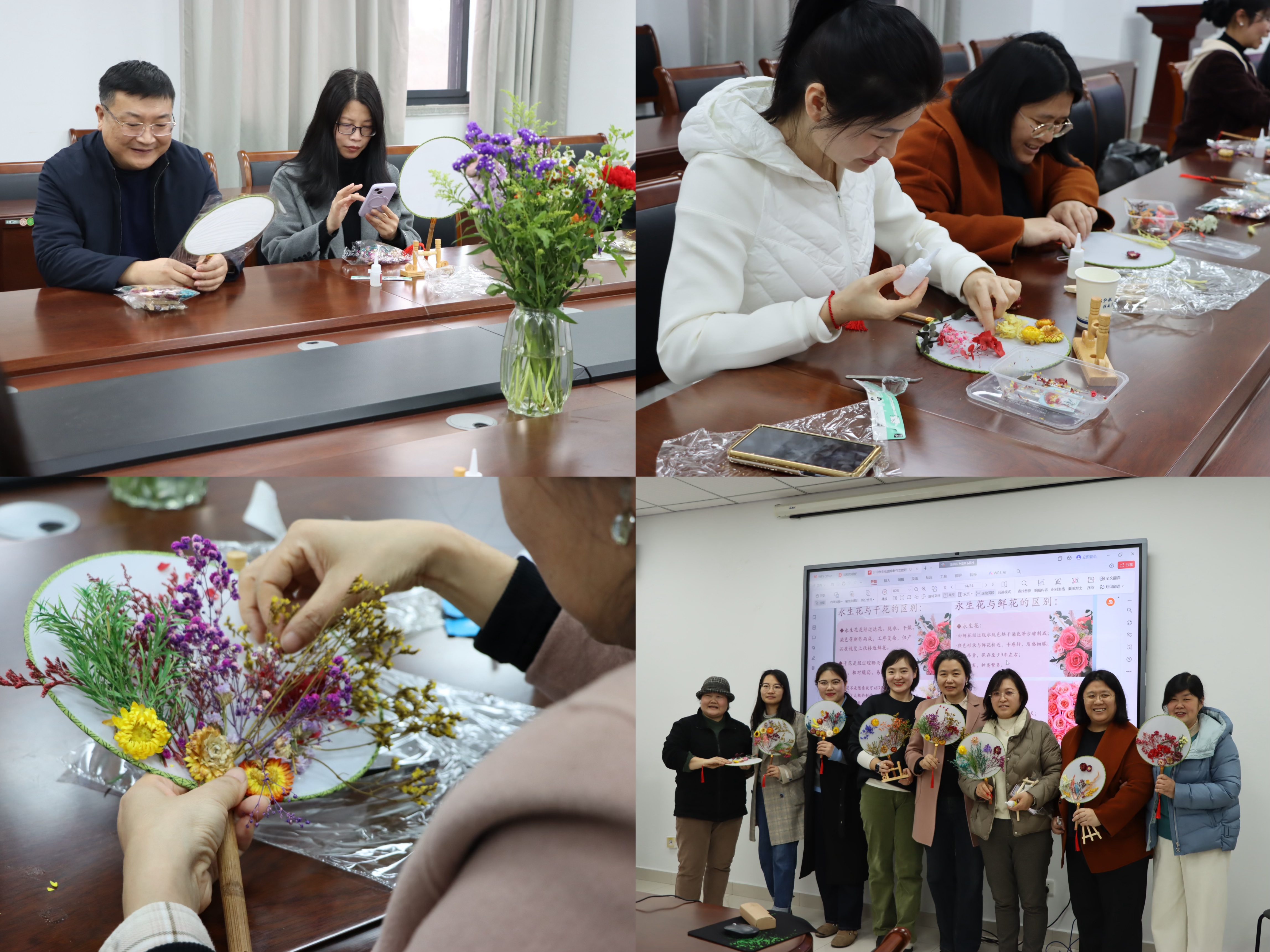 3月10日,太阳成集团tyc234cc分工会特别策划“‘团’圆‘友’扇”制永生花团扇活动,20余位女教职工集聚一堂,欢度“三八”国际劳动妇女节。活动将传统手工艺与现代美育相结合,通过沉浸式艺术创作展现新时代知识女性的独特风采。