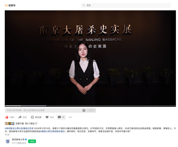 公司师生录制的“纪念馆里的思政课”《铭记历史 珍爱和平 振兴中华》在公司官微展示