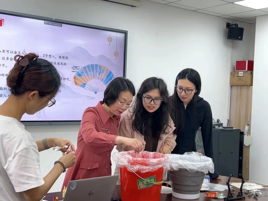 活动伊始,黄洁老师首先简要介绍了端午节的传统意义,在端午节这个特殊的日子里绘制漆扇,寄托了人们对美好生活的祝愿。同时,还结合当代生活,鼓励同学们在创作中融入现代审美元素。随后,研究生会主席陈巍巍向同学们介绍了漆扇的文化背景及制作技巧,展示漆扇制作具体流程,邀请同学上台进行互动体验,现场气氛热烈而专注。