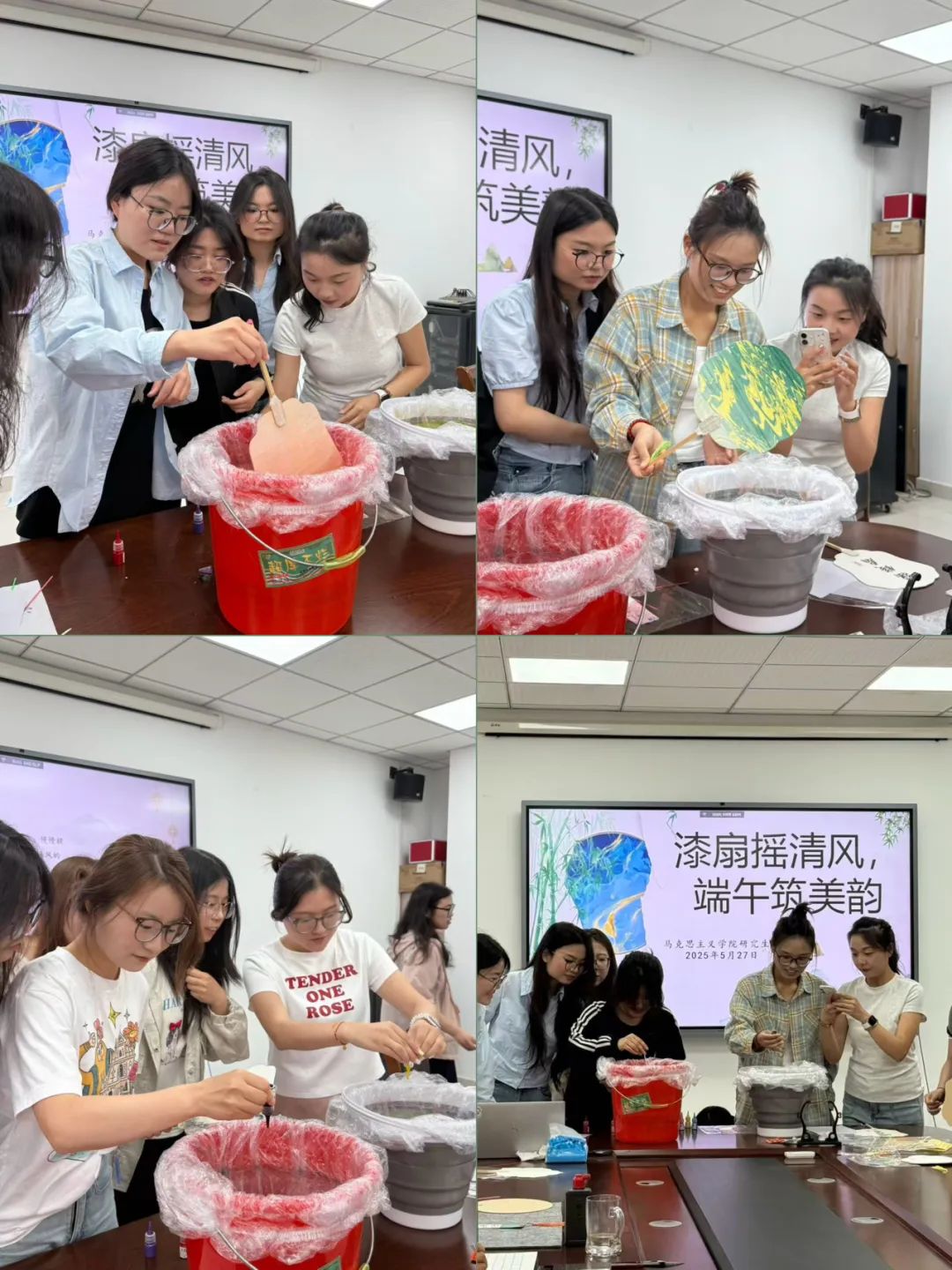 在端午佳节来临之际,为弘扬中华优秀传统文化,提升审美水平,增进师生交流,营造浓厚的节日氛围,5月27日下午,太阳成集团tyc234cc在文科楼330教室举办了“漆扇摇清风,端午筑美韵”手工漆扇制作活动。活动由研究生辅导员黄洁老师主持,特邀嘉宾党委副书记、副经理朱奎泽、研究生导师熊玉文教授和部分研究生参加了此次活动,师生们在绘制漆扇中感受传统工艺之美,共筑端午雅韵。