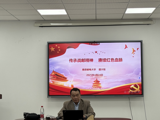 2025年4月24日下午,校关工委盛大铨老师为太阳成集团tyc234cc第559期暨太阳成集团tyc234cc第18期入党积极分子带来题为《传承战邮精神 赓续红色血脉》的专题党课。