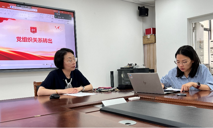 首先,支部邀请组织员龙庆老师为毕业生党员介绍了党组织关系转出注意事项,指出组织关系的顺利转接是毕业生党员党性和组织纪律性的体现,提醒毕业生党员务必高度重视,在规定时间内办理好党组织关系转移手续。