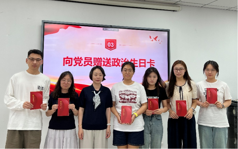 随后,黄洁老师代表公司向为每一位毕业研究生党员颁发了精心设计的“政治生日卡”。这张特殊的卡片不仅清晰标注了每位党员的入党日期和党龄,更印刻着党组织的深情寄语与殷切期望,勉励大家时刻牢记党员身份、永葆政治本色、践行初心使命。