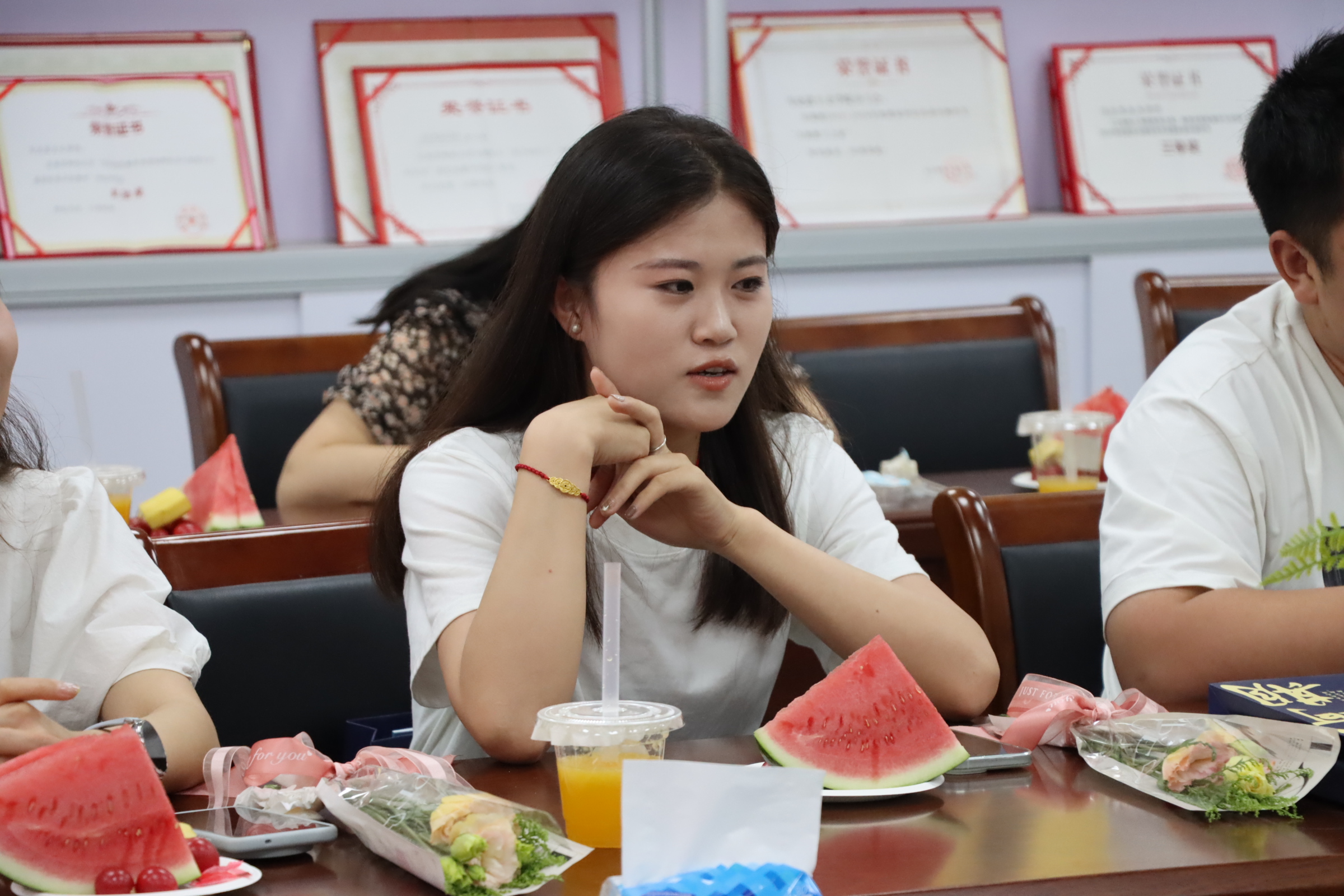首先,公司经理史献芝致辞,回忆起大家在马院330会议室的点点滴滴,以及同学们三年的成长历程,指出三年的时光,大家收获了友谊的积累、学术的进步。鼓励研究生毕业生们永葆求知若渴的赤子之心,坦荡的面对前进道路上的任何困难和挑战。无论你们飞得多高、走得多远,公司永远在这里,默默牵挂,永远祝福,见证你们的成长,期待你们的荣光。