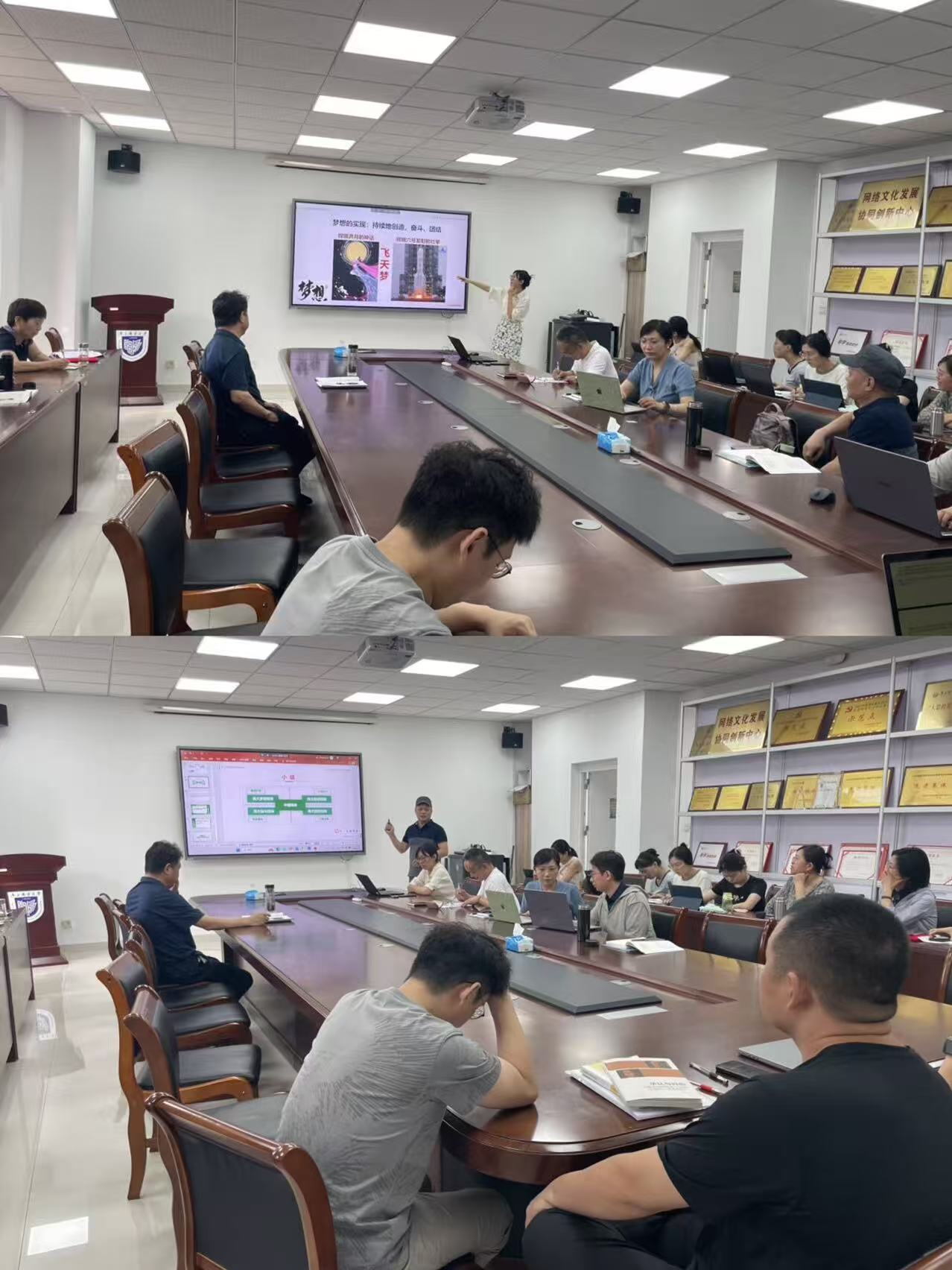 德法教研室新教师陈怡以“中国精神的丰富内涵”为主题,通过嫦娥奔月到嫦娥六号发射的壮举,生动诠释了“以爱国主义为核心的民族精神”;老教师陶新宏以飞天梦为切入点,结合疫情防控中的青年担当,引导员工感悟中国精神的时代价值。两位教师均采用“案例导入+理论升华”模式,课堂互动频繁,员工参与度高。