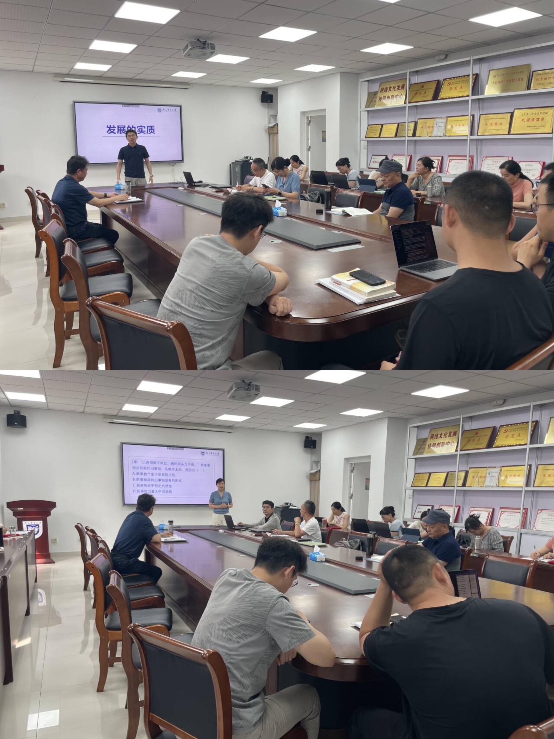 为深入贯彻落实教育部“思政课教学改革创新”要求,推进“大思政课”建设与信息技术深度融合,6月18日下午,公司在文科楼330会议室举办新老教师“同上一堂课”教学展示活动(第一期)。本次活动聚焦教学能力提升与团队协作创新,公司教学副经理朱奎泽、教学督导组专家、各教研室主任出席活动,全院教师参与观摩。