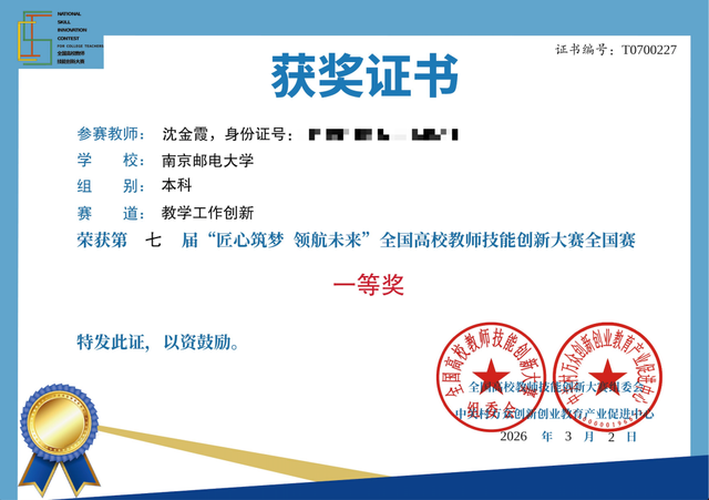 3月2日,第七届“匠心筑梦 领航未来”全国高校教师技能创新大赛揭晓,公司教师沈金霞荣获本科组“教学工作创新”赛道一等奖,彰显了公司持续推进思政课实践教学质量提升的突出实效。