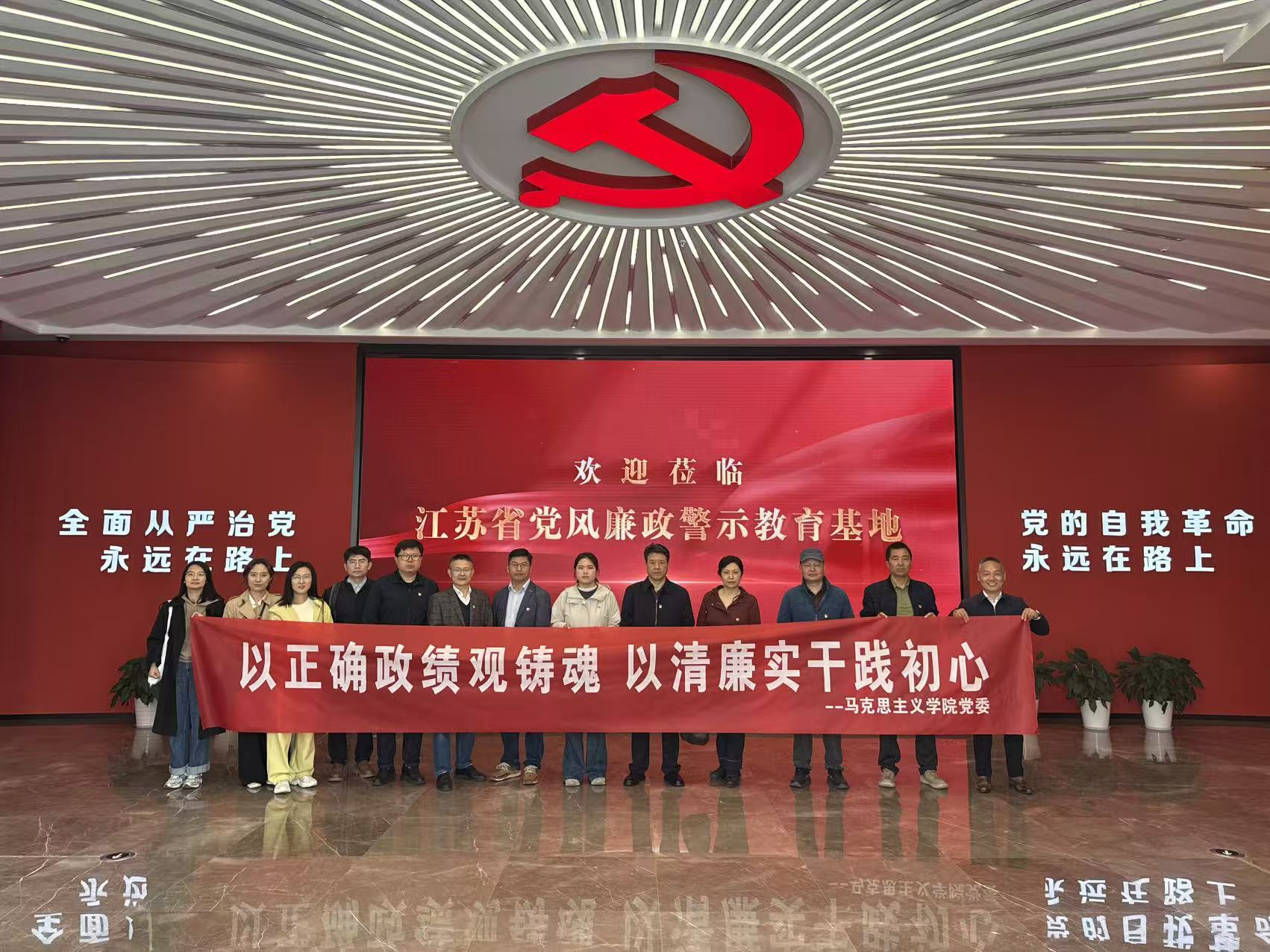 为深入学习贯彻习近平新时代中国特色社会主义思想,教育引导党员干部牢固树立正确政绩观,增强廉洁自律意识,公司党委副书记、副经理朱奎泽、系主任、党支部书记、办公室行政人员等近20人赴江苏省党风廉政警示教育基地开展“以正确政绩观铸魂以清廉实干践初心”主题警示教育活动。